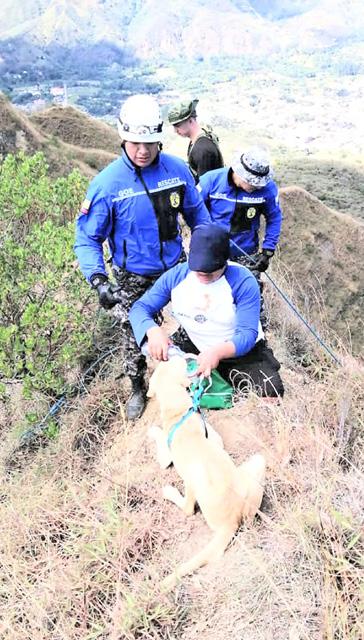 Los aullidos del can llamaron la atención de las personas que acuden al cerro Mandango lo que llevó a Sergio Soto Agila, administrador parroquial, a solicitar la ayuda de la Policía Nacional para que uno de los grupos élites rescate al animalito.