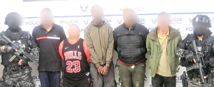 los presuntos autores de ese hecho delictivo: Day P. V. y Daybis L. P., de 28 y 21 años, de Colombia y Venezuela, en su orden, países sudamericanos; y a los ecuatorianos: Christian S. M., Moisés Ch. V. y Marco P. E., de 26, 19 y 19 años, cada uno, y de las provincias de Bolívar, El Oro y Esmeraldas, respectivamente.