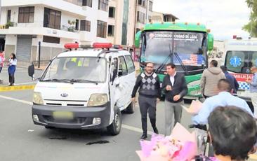 El choque entre un bus de servicio urbano, del Consorcio de Transportistas ‘Ciudad de Loja’ y una ambulancia de la Clínica Hospital Municipal ‘Julia Ester González Delgado’ produjo lesiones a 4 personas. A eso de las 12:00, ocurrió el accidente. La ambulancia circulaba por la calle Cariamanga, de este a oeste; y el bus por la avenida Universitaria, de sur a norte y se chocan en la intersección.