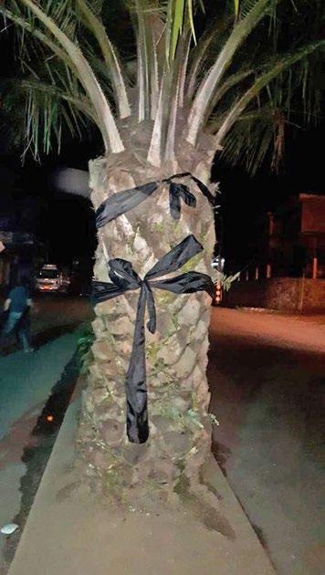 » A manera de protesta por el retiro de las palmeras, se colocaron lazos negros en los ejemplares que aún no han sido retirados.