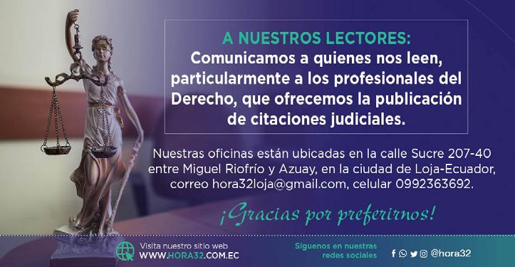 Atiende en sus nuevas oficinas: Bolívar 209-52, entre Mercadillo y Azuay • Loja - Ecuador, correo hora32loja@gmail.com • Celular: 09 92 36 36 92