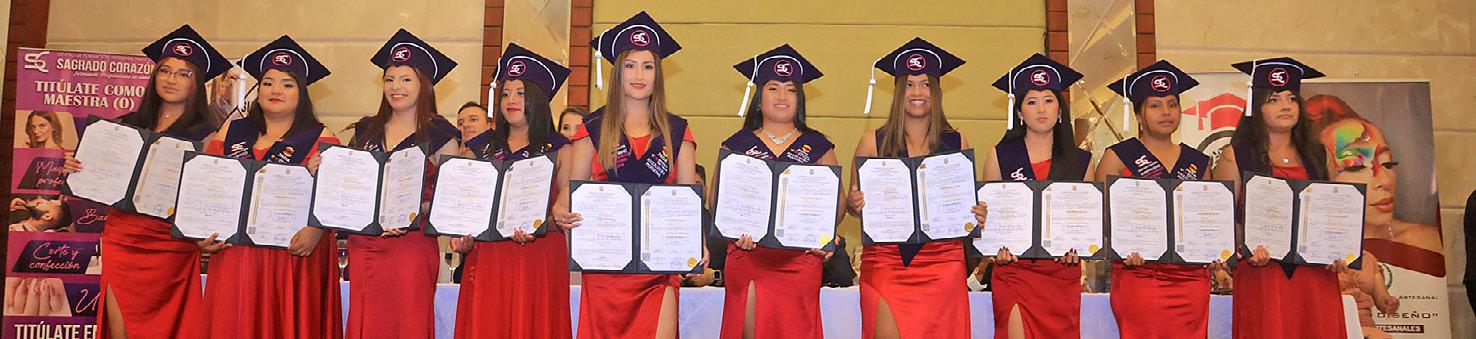 La Academia de Belleza Sagrado Corazón, de la ciudad de Loja, y la Junta del Artesano graduaron a 98 nuevos profesionales en belleza, corte y confección.