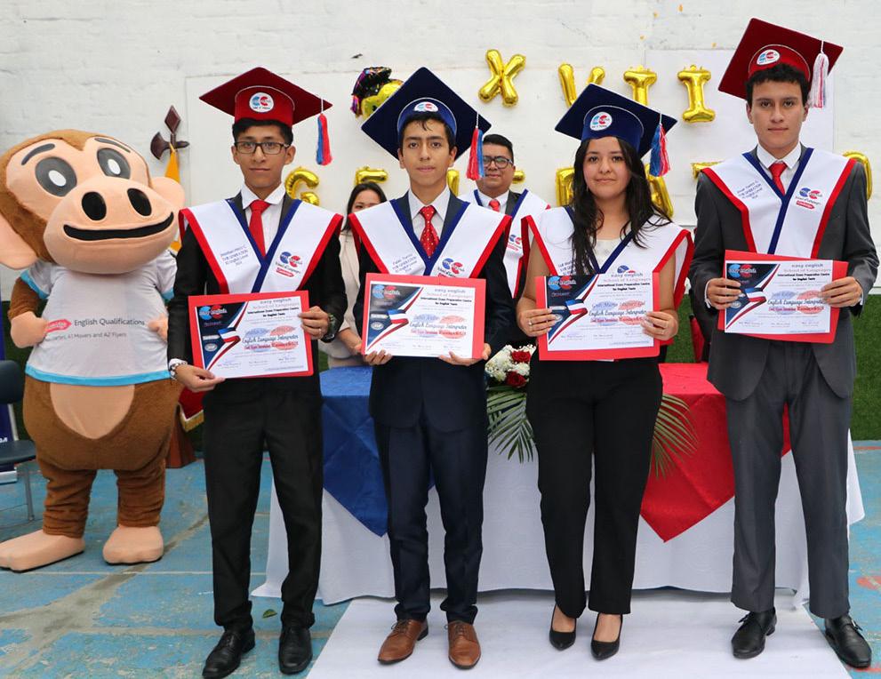 El Centro de Preparación de Exámenes Internacionales Easy English School of Languages, en días anteriores, incorporó a jóvenes que se titularon en English Language Interpreters, así como entregó los certificados de Inglés de Nivel Intermedio Alto, avalado por el Ministerio de Trabajo, y los títulos del nivel B2 del examen First Certificate in English de la Universidad de Cambridge.