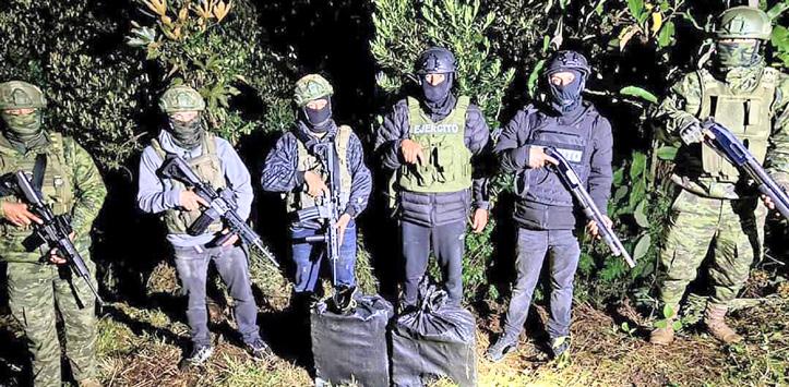 Dos sacos de yute negro, que contenían 53 bloques de clorhidrato de cocaína, fueron localizados, el último fin de semana, por una patrulla del Ejército ecuatoriano.