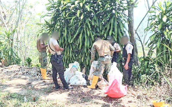 Los soldados del Ejército ecuatoriano, el viernes, 1 de noviembre de 2024, en un sector del cantón Zaruma, de la provincia de El Oro, encontraron ese material.
