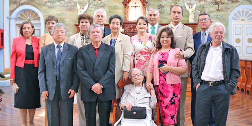» Lucrecia con sus hijos e hijos políticos: Delia Mora, Víctor Montoya, Gonzalo Izquierdo, Esperanza Montoya, Lucrecia Mendoza, Lida Montoya, Elsa Carrión, Orlando Montoya, Noemí Carrión y Patricio Mendoza.