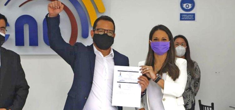 » Juan Fernando Velasco y Ana María Pesántez, en la inscripción de su candidatura por Construye, el 5 de octubre de 2020.