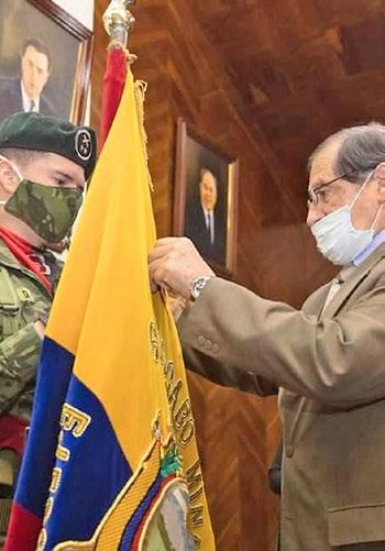 El Estandarte nacional del Grupo de Artillería Número 7 ‘Cabo Minacho’ fue galardonado por el Municipio de Loja con la condecoración al mérito profesional por el trabajo que sus soldados desplegaron durante el estado de excepción por el Covid-19.