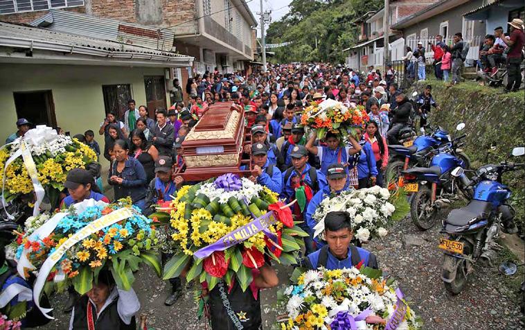 » Personas cargan el ataúd del líder indígena Wilson Bomba, en El Cauca, en marzo de 2023.