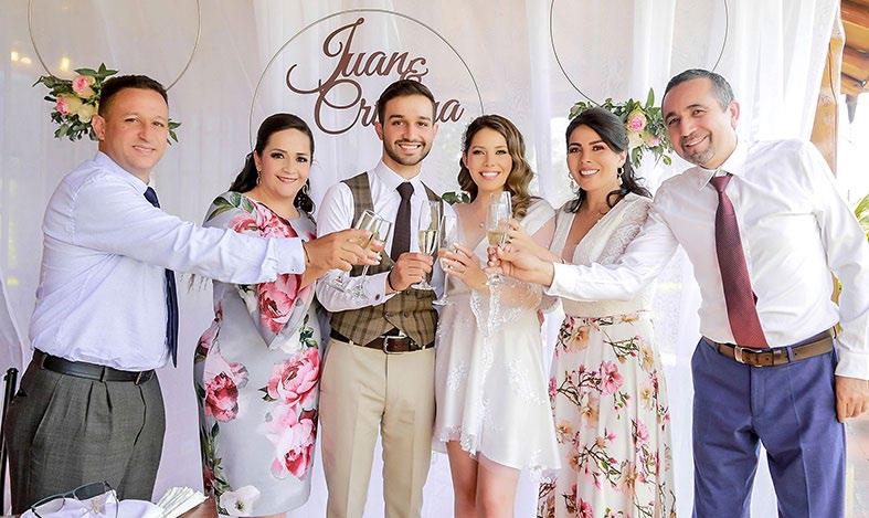 » Juan Pablo y Cristina a junto a sus padres Juan Pablo Burneo, Ligia Torres, Lupita Sarmiento y Rodrin Palacios.
