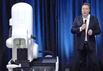 » Elon Musk junto al robot quirúrgico que usa la compañía, en agosto de 2020.
