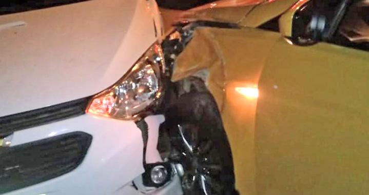 El choque ocasionó lesiones leves a una persona que en ese momento se encontraba en el automóvil blanco; el propietario del vehículo amarillo llegó y solicitó al dueño del otro carro llegar a un acuerdo extrajudicial, que fue admitido.