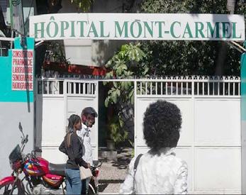 » Fotografía de la entrada de un hospital en Puerto Príncipe (Haití).