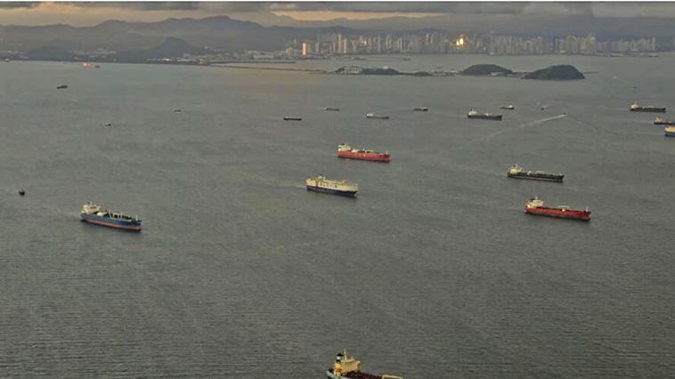 Barcos esperando entrar al Canal de Panamá, el 28 de junio de 2024.
