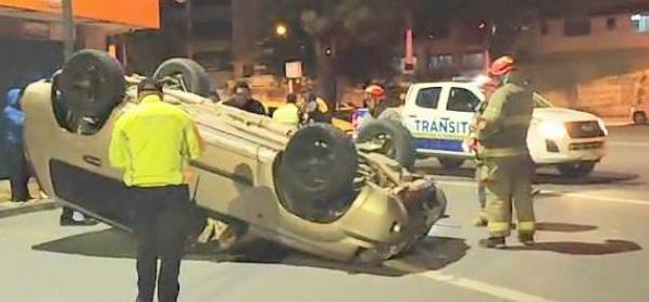 La fuerza del choque llevó a que uno de los vehículos, el de placas de la provincia de Loja (L) se volcara en medio de la vía y quedara con los neumáticos hacia arriba.