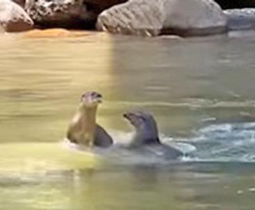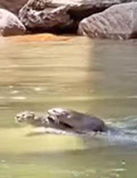 Un video muestra una pareja de estos mamíferos en ese afluente que también es considerado turístico.