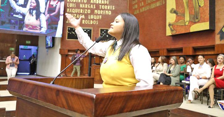 Sofía Lara Valarezo, estudiante del Colegio Eugenio Espejo, de Loja, exaltó el legado de Matilde Hidalgo de Procel en dos eventos realizados en Quito.