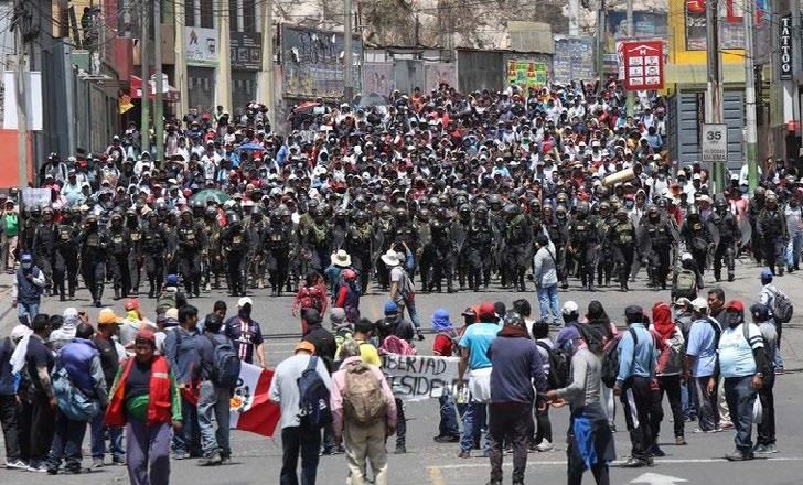 » La policía se enfrenta a los manifestantes en Arequipa, Perú, este miércoles.