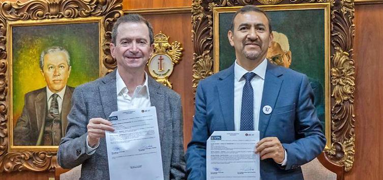 entre ambas universidades lojanas. Durante la Sesión Solemne con motivo del 53 aniversario de la UTPL, Santiago Acosta, rector de esta institución, reflexionó sobre la acelerada transformación del panorama educativo, enfatizando así la importancia de la colaboración estratégica para fortalecer la educación en un escenario de constantes cambios.