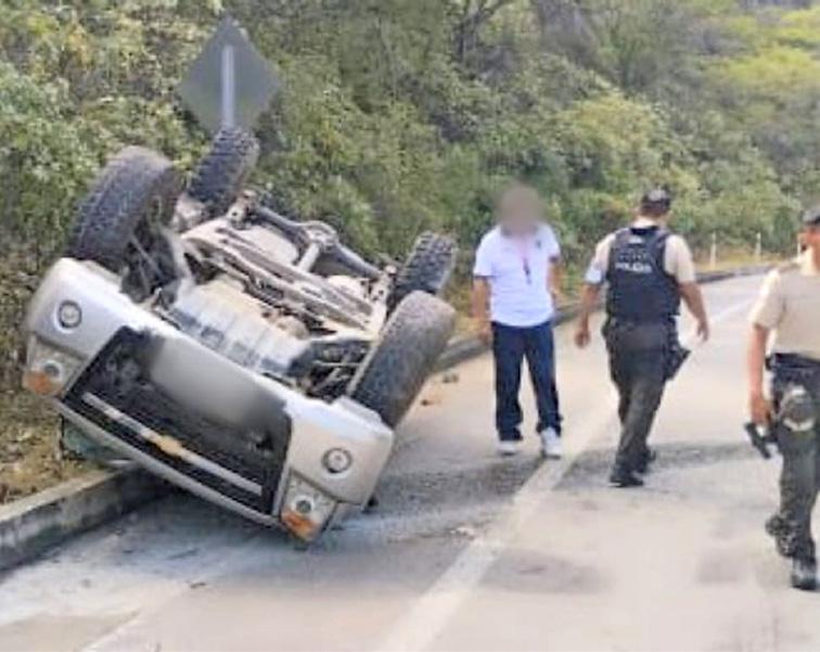 En ese lugar el conductor de una camioneta plateada, doble cabina, marca Chevrolet, de placa de la provincia de Loja (L), sufrió un aparatoso percance, el cual únicamente produjo cuantiosos daños materiales y las dos personas que se movilizaban están fuera de peligro.