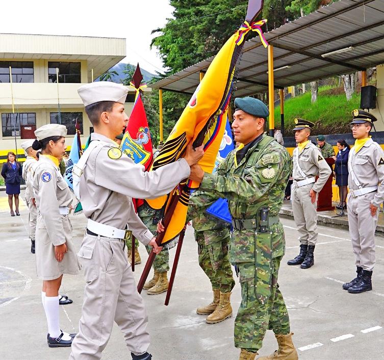 › Como parte de las actividades desarrolladas en el Comil-5, el miércoles 12 de febrero de 2025, en las instalaciones de la unidad educativa, también se cumplió la ceremonia interna de entrega de banderines de curso correspondiente al segundo trimestre. En esta ceremonia, además, se realizó la premiación a los cadetes deportistas destacados en los Juegos Nacionales Intercomiles que se desarrollaron en Salinas; así como a los ganadores en la disciplina de ciclismo en los juegos intercolegiales.