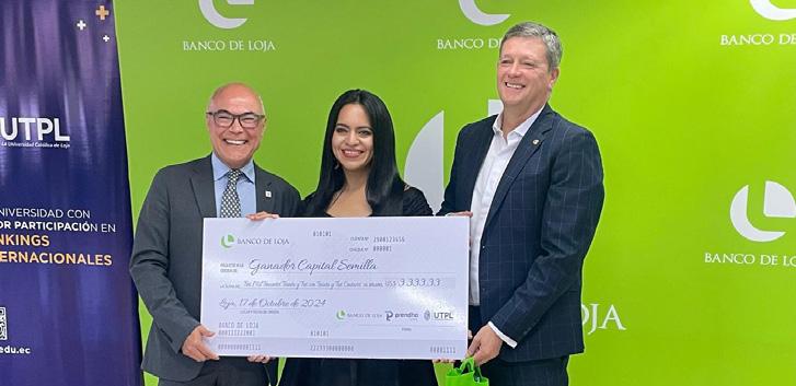 El Banco de Loja entregó capital semilla no reembolsable a tres emprendedores del sector cultural de Loja, Pichincha y Pastaza, quienes participaron en el programa de formación del Centro de Innovación y Emprendimiento Prendho de la Universidad Técnica Particular de Loja (UTPL). Este aporte les permitirá avanzar en sus proyectos, impulsando la innovación y la creación de empleo.
