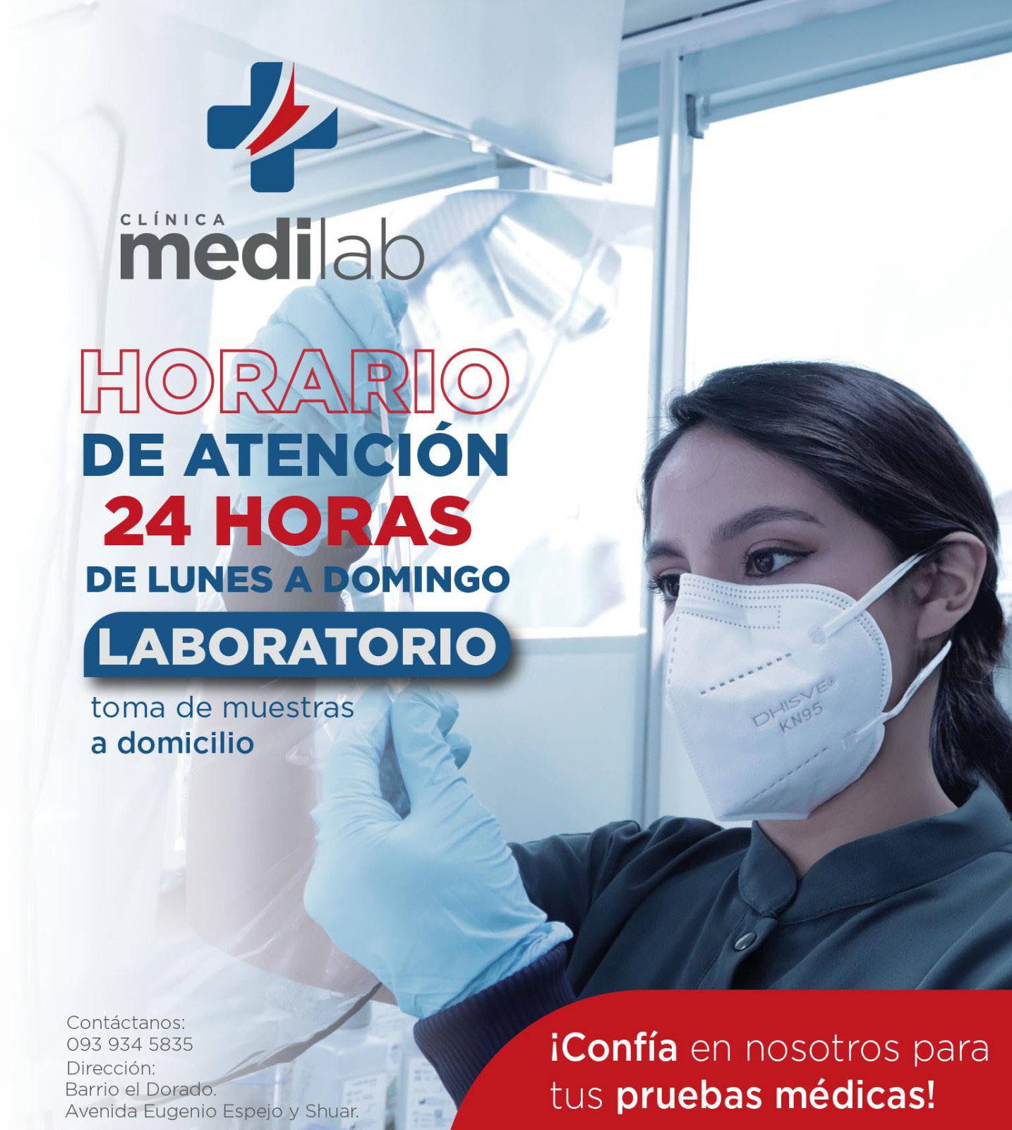 de actividad, Clínica Medilab ha fortalecido el área de imágenes, optimizado el laboratorio, así como el área de hospitalización que ahora cuenta con 22 camas y cuatro de emergencia, al igual que dispone de un moderno edificio, ubicado la avenida Eugenio Espejo y calle Shuaras, en el barrio El Dorado, al occidente de la ciudad de Loja.