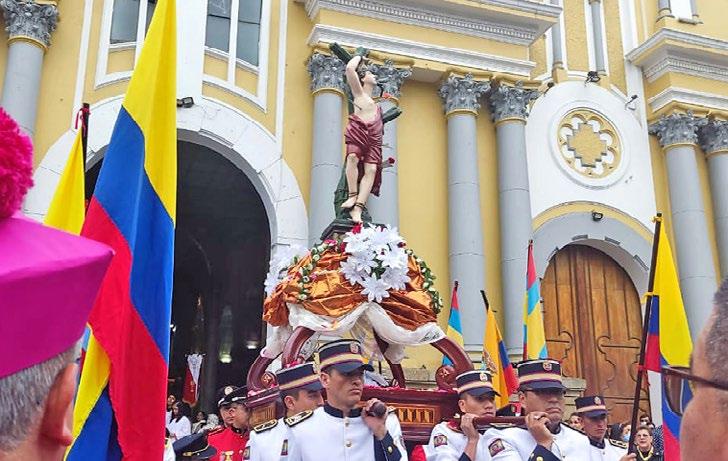 Alrededor de una hora duró la procesión en honor al Patrono Jurado de Loja, San Sebastián, que se cumplió este jueves 19 de enero de 2023. Participaron autoridades civiles, militares y eclesiásticas. El recorrido inició en la Plaza de la Independencia y concluyó en la Catedral con una misa solemne.