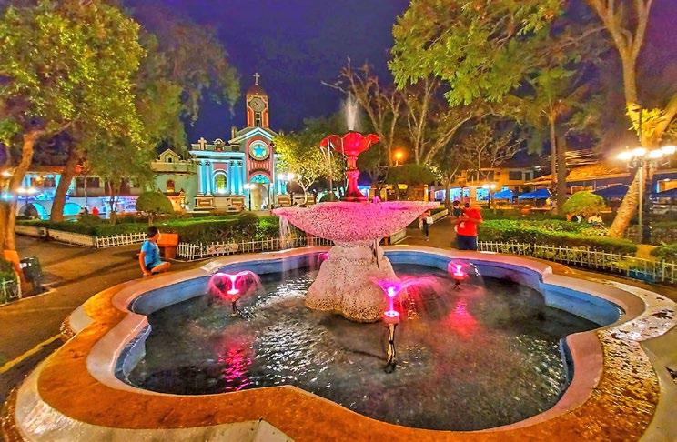 El parque central de Vilcabamba luce renovado y en las noches se puede disfrutar de la nueva iluminación.