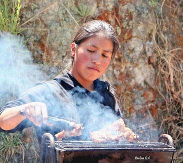 » El cuy asado acompañado de papas cocinadas o mote, es uno de los platos típicos de los Saraguros, es infaltable en cada evento, fiesta o reunión, se acostumbra que a los invitados especiales se les sirva un cuy entero.