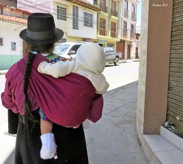 » Es muy común ver como las madres se encargan del cuidado y crianza de sus hijos; en las calles y domicilios es normal ver como cargan a sus hijos en la espalda agarrados de una tela, acción conocida como “buchir”
