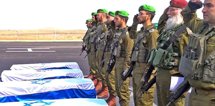 » Soldados israelíes rinden homenaje a los cadáveres que fueron entregados por Hamás.