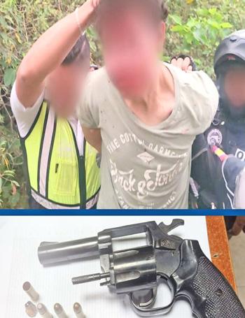 civiles ingresaron a ese terreno, en donde encontraron al ciudadano de nombre Juan y cuyas iniciales de sus apellidos son L. U., de ori gen lojano; además, los gendarmes encontraron el revólver con varios proyectiles.