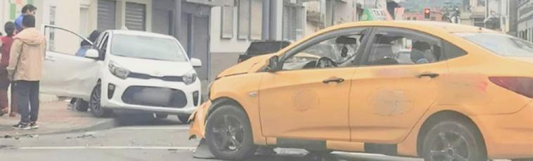 En la esquina de las calles Juan José Peña y Rocafuerte el domingo 21 de abril de 2024 ocurrió un aparatoso accidente de tránsito en el día de la Consulta Popular y Referéndum.