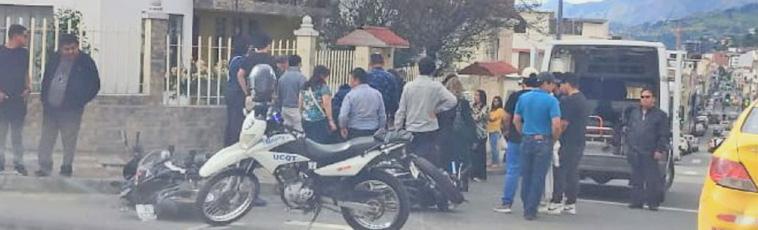 Horas después, de ese mismo día, en las calles Catacocha y Juan José Peña los conductores de dos motocicletas, también, se impactaron. Los motociclistas fueron atendidos por los paramédicos del Ministerio de Salud Pública y los dos se encuentran fuera de peligro, pero con magullones en sus cuerpos.