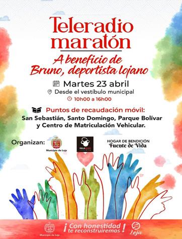 Este martes 23 de abril de 2024, la ciudadanía está invitada a colaborar y participar en la tele-radio maratón en beneficio del deportista Bruno Loaiza, quien sufrió graves lesiones en el accidente de tránsito suscitado el viernes ,12 de abril de 2024, en el límite provincial entre Loja y Azuay, mientras se dirigía a un certamen de taekwondo en Cuenca como parte de la delegación de deportistas lojanos.