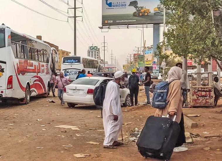 » Personas se disponen a abordar un autobús en Jartum, el 24 de abril de 2023.