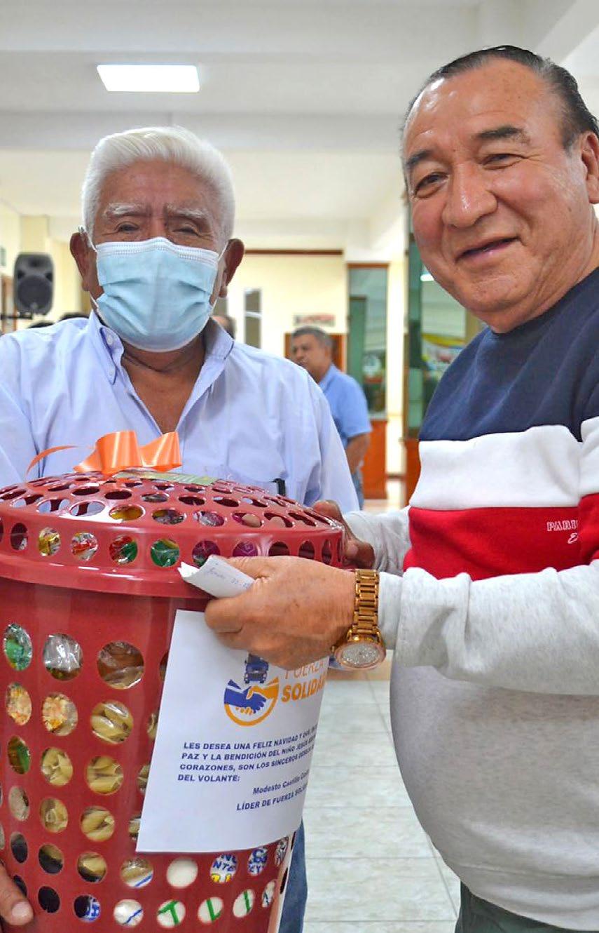 El presente navideño fue entregado a choferes jubilados. El líder del colectivo dijo que hubo aportes de compañeros y su familia del extranjero.