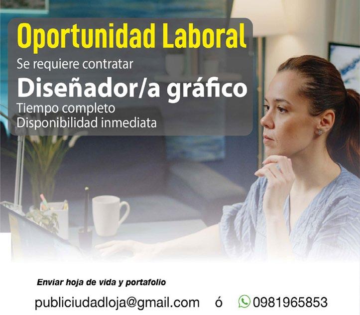 Página 3 Un colectivo agasaja a conductores jubilados Página 12 Página 4 Libertad realiza entrenamientos discretos Página 8 Una campaña destaca la importancia de la vitamina D Alarma por robo a mano armada, en Macará LUNES, 26 DE DICIEMBRE DE 2022 HORA32LOJA 0992363692 @HORA32LOJA @hora32loja HOY DÍA 25º NOCHE 14º TU DIARIO DIGITAL OPINIÓN “Es necesario recordar derechos y obligaciones, conocer las leyes y ejercer lo dispuesto en ellas” Abel Suing CIFRAS VACUNAS APLICADAS 14’751.392 Primera dosis Segunda dosis Dosis única 13’650.263 7’643.795 Página 5 WWW.HORA32.COM.EC
