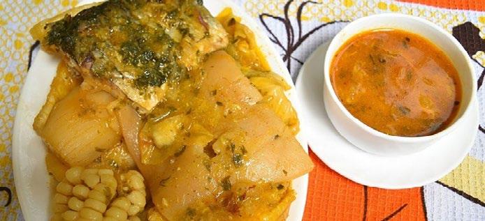 Este plato de la gastronomía calvense se prepara con varios ingredientes de la zona: yuca, plátano maduro, granos, col, camote, pescado salado y cuero de chancho, el cual se sirve únicamente durante la Semana Santa, como parte de la tradición alimentaria del pueblo mágico.