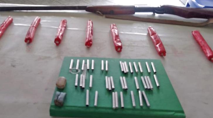 Una escopeta, de fabricación artesanal, y una gran cantidad de explosivos decomisó la Policía Nacional, emplazada en la provincia de Loja, el martes 25 de julio de 2023, en la parroquia Buenavista, del cantón Chaguarpamba.