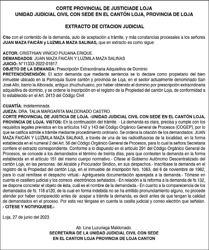 El viernes 1 de marzo de 2024 Luis L. S., mayor de edad y de la provincia de Napo, recuperará su libertad luego de permanecer 5 días preso por haber insultado a un sargento y a un cabo de la Policía Nacional, emplazada en la provincia de Loja. Luis L. S. fue detenido en las calles Diamantina entre Rondina y Carupano, al noroeste, el lunes 26 de febrero de 2024, a las 10:30, por la Policía Nacional, y la