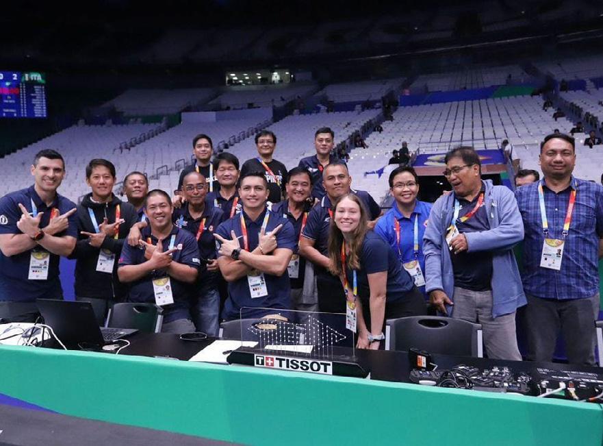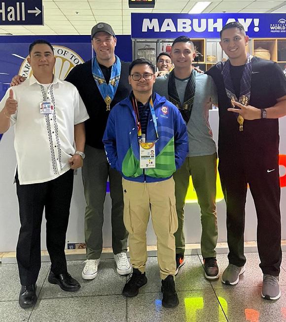 » Carlos Peralta, Matthew Kallio y Andrés, Omar Bermúdez, junto a la delegación de Filipinas que dio la bienvenida a los árbitros.