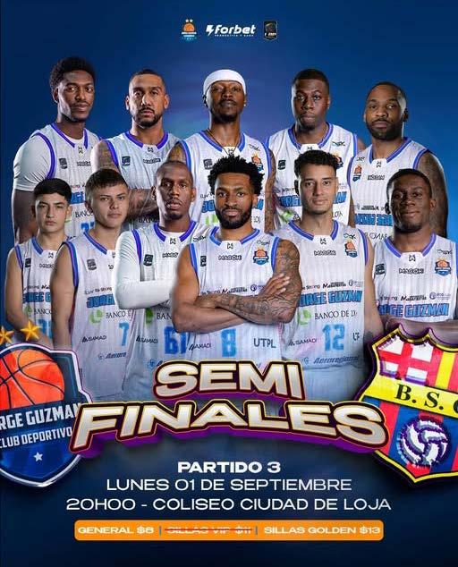 Con la serie igualada a una victoria por bando, este lunes 1 de septiembre de 2025, desde las 20:00 se juega el tercer encuentro entre el club lojano Jorge Guzmán y Barcelona/ Caballito, de Guayaquil.