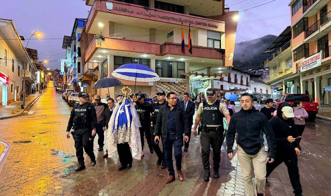 » La imagen recibió los honores correspondientes por parte de las entidades uniformadas de Calvas.