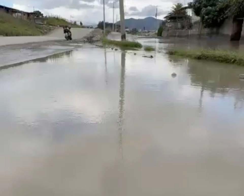 » En uno de los tramos de la carretera se ha formado un estanque. (Imagen cortesía O. E. Radio 94.1 FM)