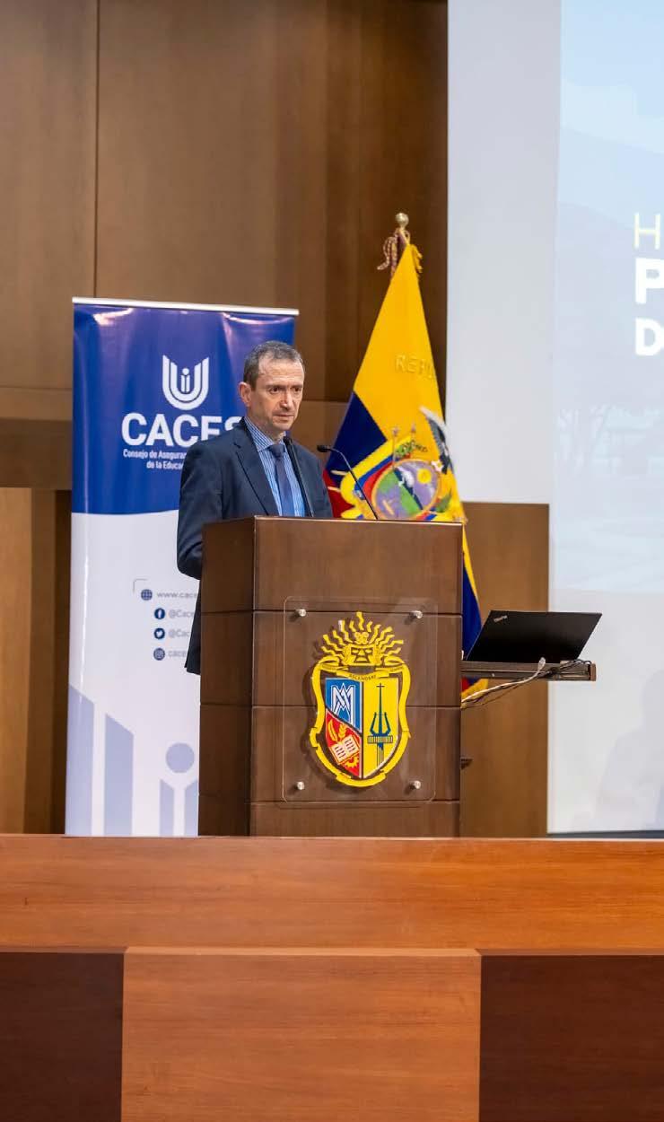 Juan Manuel García Samaniego, Director General de Evaluación Institucional y Calidad de la UTPL, destacó que este proceso—de carácter voluntario según el artículo 173 de la LOES—fue realizado bajo estrictos parámetros técnicos definidos en el Reglamento, Modelo y Metodología del Caces.