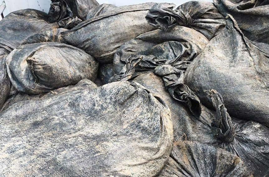 » Cada saquillo contenía 30 kilogramos de material mineralizado, con un total de 600 kilogramos.