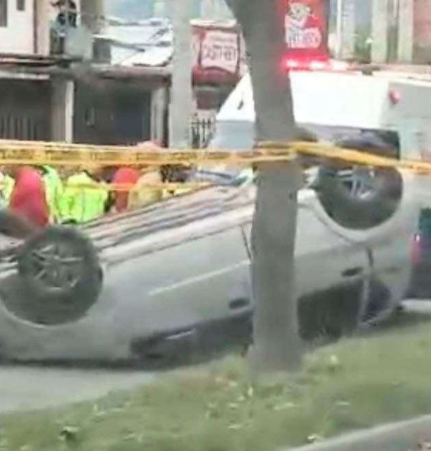 Uno de los vehículos que se involucró en el percance quedó con los neumáticos hacia arriba, en medio de la avenida Benjamín Carrión Mora, a unos metros de la laguna de esa ciudadela.