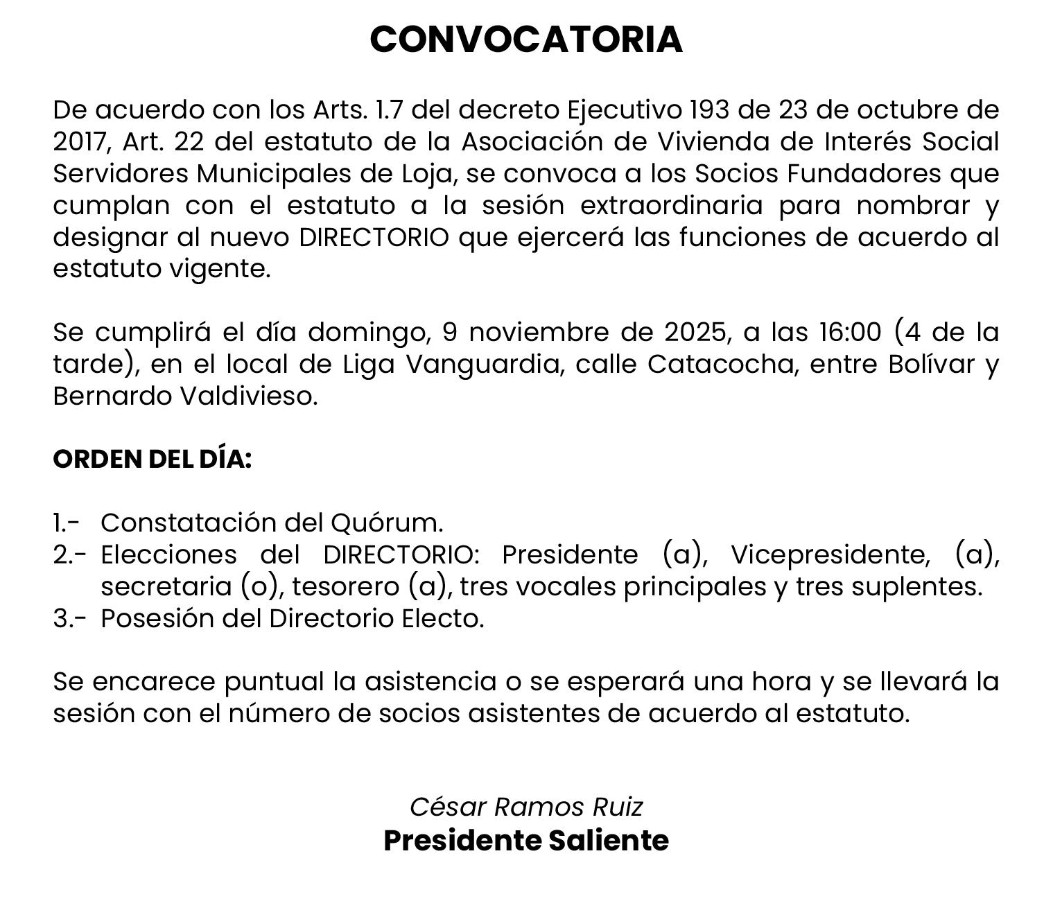 Sempértegui hace una cordial invitación a todos los interesados a